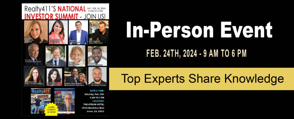 Discover the Latest Insight, News and Investment Strategies at Realty411’s National Investor Summit in Southern California.